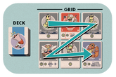 After each Flip, tally up your current grid of toons’ Fame points, then spend them to hire more stars for your cast. Purchase these new toon cards from the market and add them to your deck. Or, spend some of your Fame to dismiss a card, and get that bad actor off the stage. Sorry kid, you just don’t have what it takes to be a star in this show.