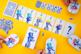 Petiquette is a fresh, new kind of game played with cards with combinations of three animals, three hats, and five numbers. Players look at a lineup of five randomly placed cards and try to find some logic or pattern within them. Then they choose which card would most properly fit into that pattern. For example, if the sequence is “red, red, yellow...” you might feel that yellow should come next. If it’s “dog, cat, bird…” then maybe dog again feels right. But there’s no single correct answer. If someone else chooses the same card as you, you'll earn points.