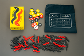Those who repeatedly plunge their hands into the dark mud and grab the most eels gain the glory! But eels aren't the only thing lurking within. There are many frightening snakes, too! Only those who grab the most lose everything. Should you grab many, just a few, or quit while you're ahead? Carefully observe your opponents and make your choice!