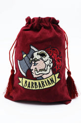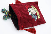 This dice bag is big enough to hold several sets of dice while not being bulky. It has an embroidered design on faux suede with a drawstring closure.