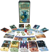 A pantheon from several civilizations — including Greek, Egyptian, and Middle-Eastern — gets added to 7 Wonders Duel in 7 Wonders Duel: Pantheon, with each god having its own power to help you or hinder your opponent. During Age I you collect mythology tokens — which allow you to choose which deities have a place in the Pantheon — and during Age II you collect offering tokens, which help you court those deities. Then, during Ages II and III, you can activate a god or goddess in the Pantheon instead of taking a card from the pyramid. To do so, you pay whatever that god or goddess demands from you in offerings, then place it next to your city.