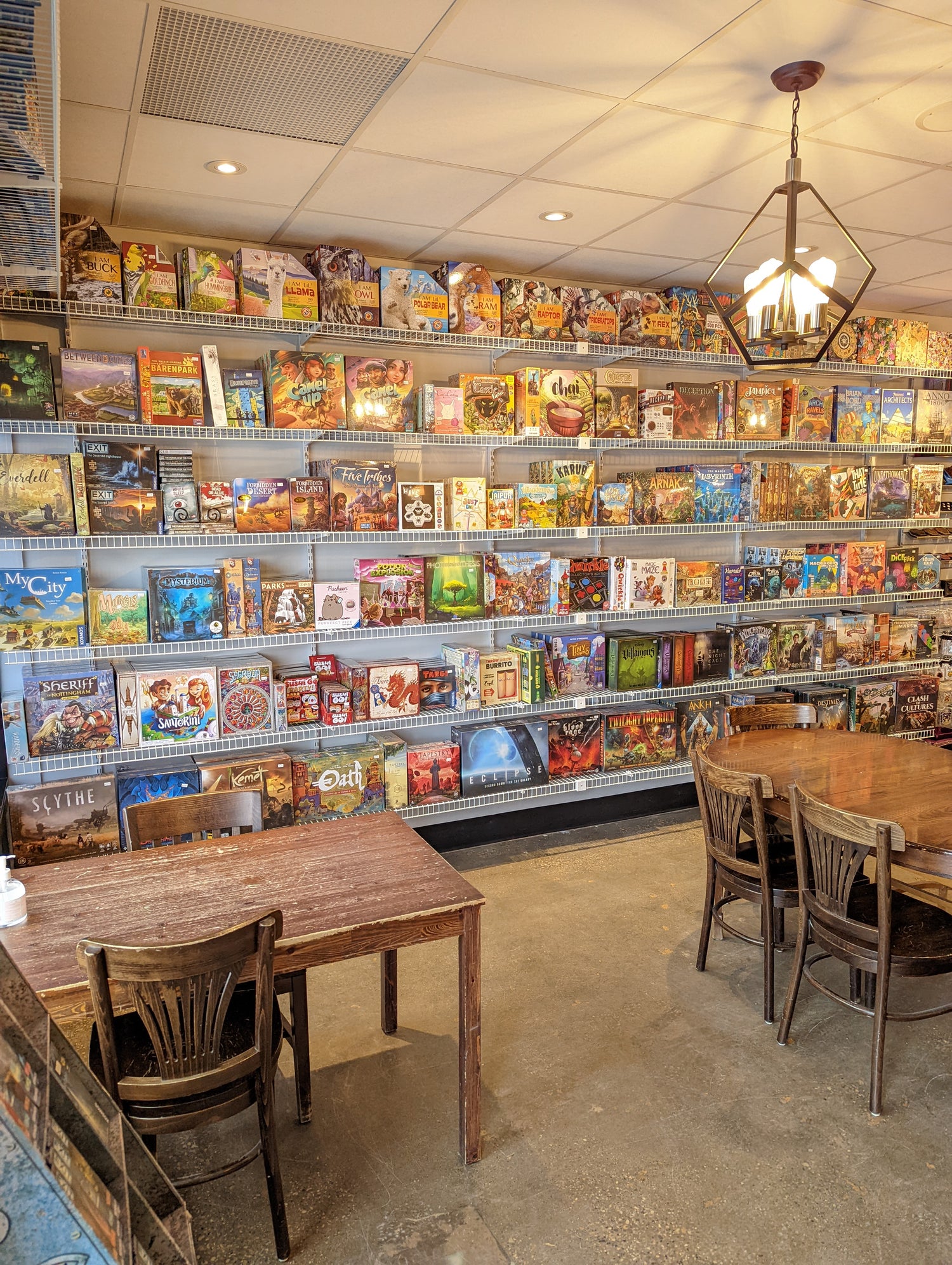 Then head to the black shelves and pick out a game or ask our staff for a recommendation.