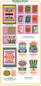 Add wildlife to your garden with Chaos Critters! Incorporated in the Specialist Deck, these critters will give your garden the unique perks or inhibit your neighbors. You must keep them fed with a steady supply of plants. Otherwise, they may find their way to your competitors! Chaos Critters have no loyalty, they just want to nosh.
